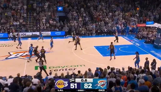半场结束,雷霆82-51大比分领先湖人,亚历山大砍下21分