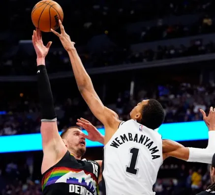 据统计,约基奇生涯对阵文班亚马的战绩来到5胜2负,期间场均砍下37.3分10.9篮板9.1助攻1.4盖帽1.1抢断,投篮命中率55%。