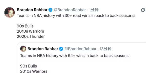 连续三年西部登顶 两年联盟第一!雷霆比肩公牛勇士,两项纪录载入史册