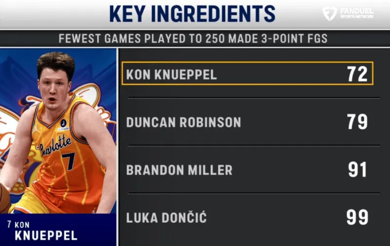 此役过后,克尼普尔也正式成为NBA历史上单赛季投进250记三分最年轻的球员。