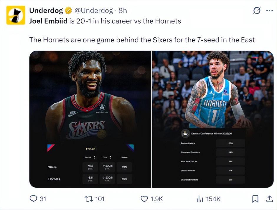 这场比赛之前,恩比德职业生涯面对黄蜂的战绩是20胜1负,可如今的黄蜂已经蜕变,已经冲到东部第七的席位,年轻势头很足,没想到最终还是败在了苦主恩比德的手下,此役后恩比德面对黄蜂21胜1负,黄蜂也从第七掉回第十。