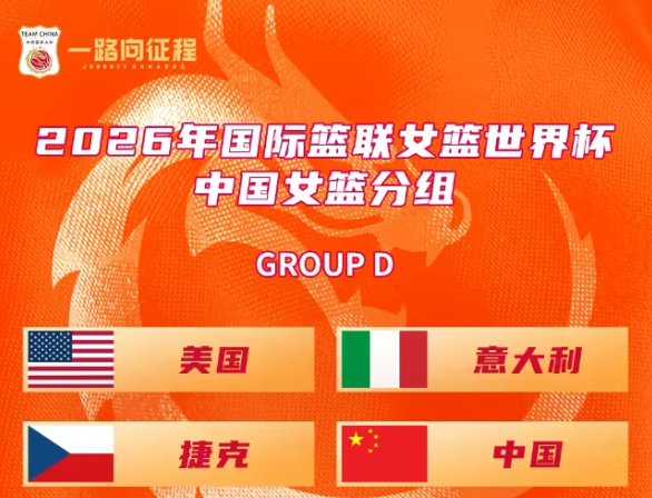 北京时间4月22日,中国女篮官方社媒公布,2026年女篮世界杯抽签在柏林举行,中国女篮进入D组,同组对手美国、捷克、意大利。